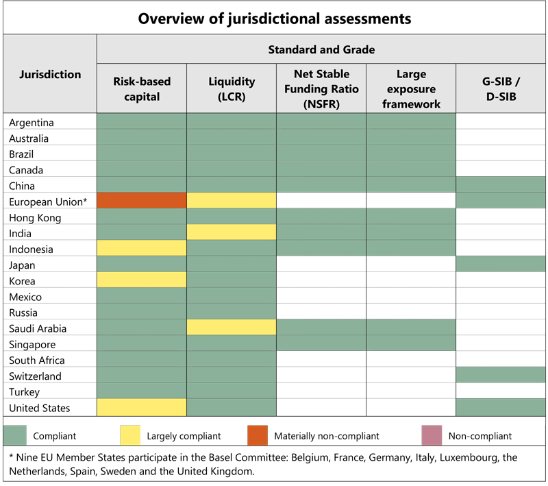Jurisdictional assessments review the extent to which domestic regulations in each member jurisdiction are aligned with the minimum regulatory standards agreed by the Committee (more about the RCAP remit and methods). The results of each assessment are published in a separate report on the specific jurisdiction.