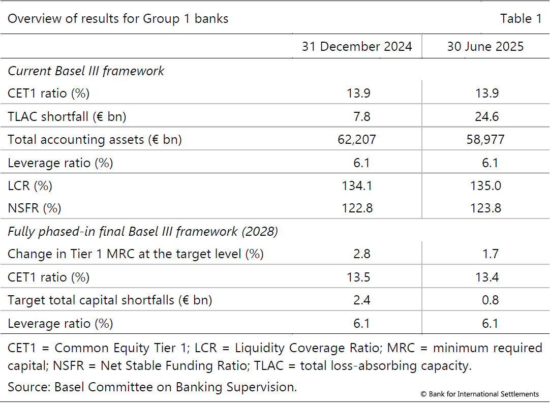 The report, based on data as of 30 June 2025, sets out trends in current bank capital and liquidity ratios and the impact of the fully phased-in Basel III framework, including the December 2017 finalisation of the Basel III reforms and the January 2019 finalisation of the market risk framework. It covers both large internationally active banks (Group 1) and other smaller banks (Group 2). See note to editors for definitions.