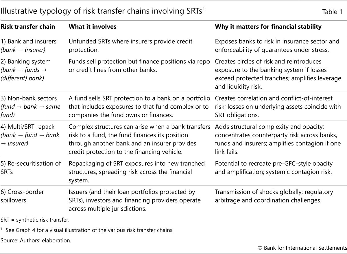 This article provides an overview of SRT trends and their key drivers and assesses the potential risks of these instruments. A key contribution is to examine whether and under what conditions SRTs may have system-wide risk implications by creating new – or amplifying existing – channels of contagion in stress. The analysis builds on other recent SRT work (BCBS (2026); Cortes et al (2025); ESRB (2025)) and informs the debate on evolving business models and interlinkages between banks and NBFIs.