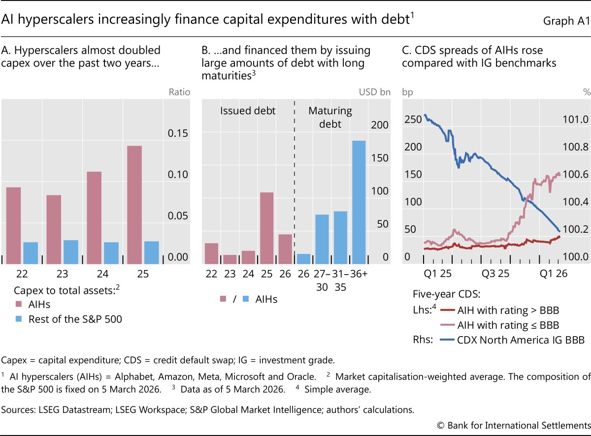 See also I Aldasoro, S Doerr and D Rees, "Financing the AI boom: from cash flows to debt", BIS Bulletin, no 120, 2026.